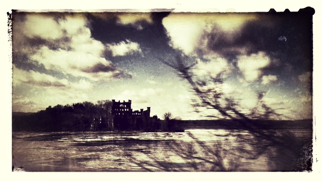 I took this photo with my iPhone from the moving train on my way to Manhattan. It's actually the best view of Bannerman Island from the land. One of the most picturesque sites along MetroNorth's Hudson River line, the tiny island has an armory and a residence, both built in the style of a Scottish castle.